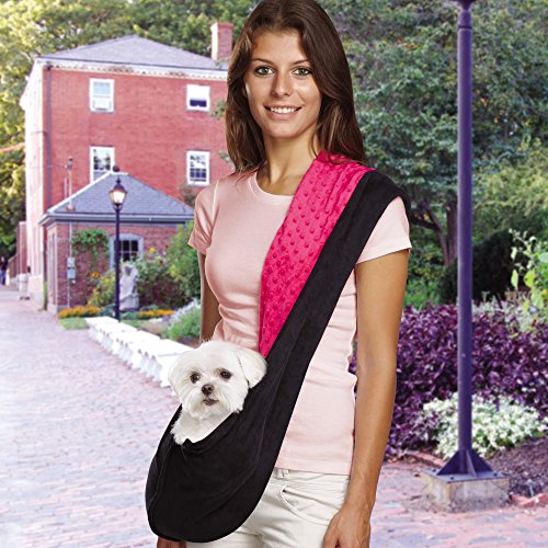 Studio : PetEdge Dealer Services Publisher : PetEdge Dealer Services Binding : Misc. Product Description This reversible sling dog carriers are the perfect combination of convenience. New, sizzling color choices add a great look. Sling-style carrier loops over one shoulder while the pet rests in the pouch on the opposite hip to keep pet secure and comfy. Pet lovers will adore these reversible sling pet carriers. The reversible design features one side in black ultra suede and one side in short pile dimple plush. Each includes a polybag with an insert card. Made of 100-percent polyester. Machine wash in cold water on a gentle cycle. Line dry. Available in black and pink color combination. Carrier measures 67-length by 17-inch width. 0