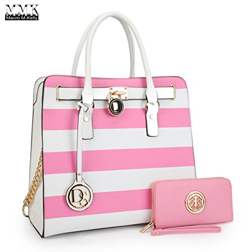 -. Brand : Marco M. Kelly -. Color : Ma-02-2553w-pink/White/Gold -. Department : womens -. EAN : 6926269987231 -. Feature : ~High quality PU leather.USA Brand (Imported)~Those bags will never leave your side. Fashionable, affordable and convenient, you'll want one in every color! Limited EDTION - Macro M.Kerry Handbag Collaborative Design (This is not a Michael Kors)If you're not satisfied for whatever reason, we will gladly accept your return provided that you request authorization / ~6417W Large Size Beautiful Women Designer Handbags with Matching Color Free Lady Purse : Rolled and Stitched Faux Leather Handles~Flat Bottom~Polished Gold-Tone Zipper Pulls, Accents and Rings~Approx. Size: 17"W x 10.8"H x 6"D~Strap Drop Length: 4.5"~Shoulder Strap Length: End to End 57'' / ~Ma-02-2553 Large Size Handbag with Beautiful Women Wallet: Studded Flat Bottom~Top Zip Closure~One Interior Back Wall Zipper Pocket~Two Interior Open Top Item Pockets~Approx. Size: 14.5"W x 12.5"H x 6"D~Chain Shoulder Strap Not Detachable~Shoulder Strap Length: End to End 41'' / ~Tp-62177 comes with Free Matching Color Gift Wallet:Kiss Lock Center Closure / Two Side Snap Fastening Closures~Padlock Front Exterior~Gold-Tone Hardware~Small Zipper Pocket Inside Center Kiss Lock Compartment~Approx. Size: 13"W x 10"H x 5"D~Shoulder Strap Length: End to End 57' / ~08-6893(without item number just named as color): ~Top Zipper Closure~Removable Shoulder Strap~Interior Zip Top Closure Pocket~Interior Front Wall Open Top Item Pocket~Approx. Size: 13.5"W x 10.5"H x 7"D~Shoulder Strap Length: Removable Shoulder Strap from to end 57'' -. Model : xl-08-6893(08-168) -. PackageQuantity : 1 -. ProductGroup : Shoes -. ProductTypeName : HANDBAG -. Title : MMK Collection Women Newest Fashion Women Satchel/Tote handbags with Free Matching Walle(6417)~Designer Purse with Wristlet Wallet(02-2553w-pink/White/Gold)