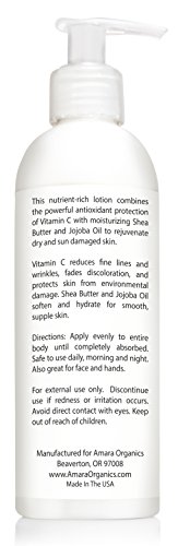 Amara Organics Vitamin C Face & Body Lotion 15% - With Shea Butter & Jojoba Oil - 8 oz