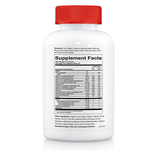 SmartyPants Kids Complete Gummy Vitamins: Multivitamin & Omega 3 Fish Oil (DHA/EPA Fatty Acids), Vitamin D3, Methyl B12, 90 Count