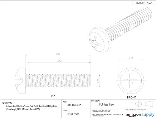 Stainless Steel Machine Screw, Plain Finish, Pan Head, Phillips Drive, 10mm Length, M2-0.4 Threads (Pack of 100)