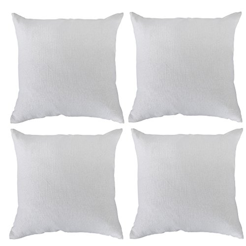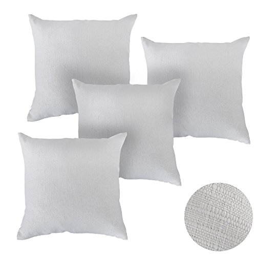 Deconovo Soft Throw Pillowcase Faux Linen Look Hand Made Pillow Case Cushion Covers With Invisible Zipper For Sofa 18x18 Inch White 4PCS