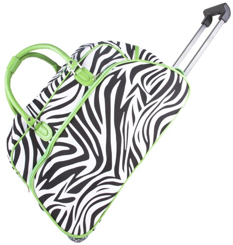 -. Title : World Traveler Green Zebra Rolling Wheeled Duffle Bag 21-inch