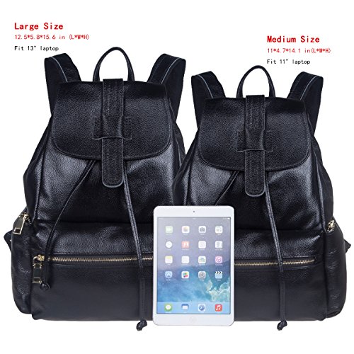 -. Feature : Materials: Cowhide Leather(Genuine Leather). High quality gold metal hardware and nylon lining. / Interior structure:1 inner card case slot and 1 cell phone pocket. Have 2 zippered pockets, which can carry your credit card, money or other important things. Exterior structure:1 zippered pocket in front, 1 zippered pocket behind, 2 zippered pockets on the two sides. It not only increase the capacity of the bag, but also convenient for you to access good. / Top flap magnetic snap closure with interior drawstring for extra security. Adjustable straps to fit on back over shoulders. / Comfortably holds an iPad Air, mobile phone, wallet, cosmetic, umbrella and other small things. Perfect for using in office, school, travel or any other daily occasions. / This purse have 2 sizes, the Large one is (L)12.5*(W)5.8*(H)15.6 in (Fit 13" laptop) and the Medium one is (L)11*(W)4.7*(H)14.1 in (Fit 11" laptop ).