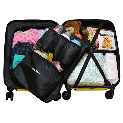 Studio : Emmzoe Publisher : Emmzoe Binding : Baby Product Product Description Emmzoe's Baby Gear 20" Carry-On Spinner Luggage provides a hassle-free way to carry all the essentials needed to travel with your kids! Emmzoe's unique one-of-a-kind design will make your airport security check easier and more efficient. The detachable and insulated food compartment will keep your baby drinks, milk, and food cool while traveling and make for easy inspection at x-ray machines in airports. It's strong and secure design includes a dual outer zipper slider with lock hole for added security. Features: - Portable and lightweight - Removable food cooler - Fully lined interior - Multi-directional wheels - 3-stage telescopic retractable handle - 1-Year Limited Warranty. Dimensions: - Overall dimensions: 22 x 14 x 9 inches - Luggage dimensions: 19 x 13 x 9 inches - Net Weight: 6.6lb - Gross Weight: 8.2lb Material: - Polycarbonate / ABS - Interior: 210D Polyester 0