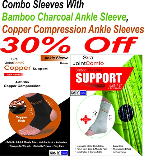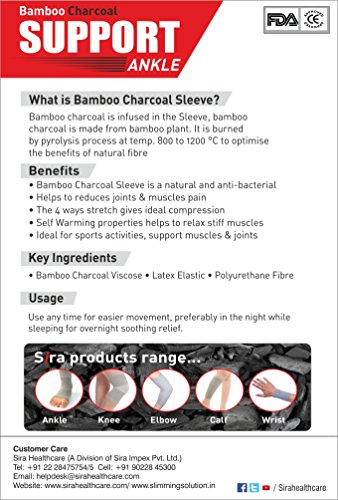 -. Feature : Non-Returnable. Sira Copper Compression Ankle Single Sleeve. Sira Bamboo Charcoal Ankle Single Sleeve. Stretch upto 20-25% more / Sira JointComfo is Clinically Proven Pain Reliever.• Designed by Orthopedics with high performance technology. Therapeutic warmth helps in joint pain & reduces swelling / Copper Rich- Highest quality copper infused helps to decrease the swelling of muscles and Joint. Increases the blood circulation. Bamboo Charcoal Sleeve is a natural and anti-bacterial / Composition - 1. - Improve blood circulation. - Thermal Effect 2. Copper - Anti Bacterial - Anti- Odour 3. Spandex - High Compression - Support to Joints 4. Coolmax - Soft breathable wicking. Copper Compression fiber made by advanced technology gives relief from arthritis pain. Highly Comfortable & breathable. Self Warming properties helps to relax stiff muscles / Use any time for easier movement, Preferably in the night while Sleeping for overnight soothing relief, Ideal Compression for relief in Ankle Pain and Ankle Support, Ankle Arthritis Pain, Gymnastic & Sports Supports, Athletic Sports
