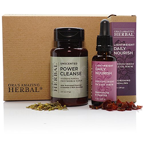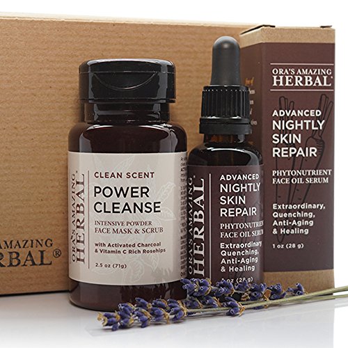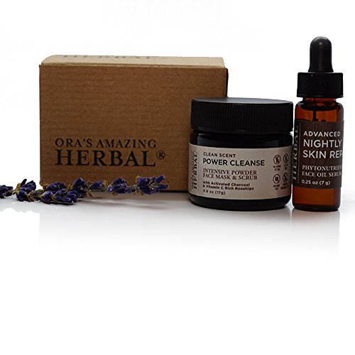 Powercleanse Ingredients: *PLANTAGO MAJOR (PLANTAIN LEAF), KAOLIN CLAY, ROSA CANINA (ROSEHIPS), HONEY, BOSWELLIA CARTERI (FRANKINSENSE), ACTIVATED CHARCOAL (FOOD GRADE WILLOW BARK SOURCE), ESSENTIAL OILS OF CEDRUS ATLANTICA (CEDARWOOD), EUCALYPTUS GLOBULUS (EUCALYPTUS), MENTHA SPICATA (SPEARMINT), CYMBOPOGON CITRATUS (LEMONGRASS), MELALEUCA VIRIDIFLORA (NIAOULI) - *ORGANIC. Advanced Nightly Ingredients: Vitis vinifera (Grapeseed Oil, Non-Gmo) Infused With Organic Calendula officinalis (calendula), Organic Symphytum officinale (comfrey), Organic Plantago major (Plantain), Organic Stellaria media (Chickweed), Organic Hypericum perforatum (St. John's Wort), Organic Arctium lappa (Burdock) And Organic Thymus vulgaris (Thyme), Organic Prunus armeniaca (Apricot) Kernel Oil, Limnanthes alba (Meadowfoam) Oil, Organic Calophyllum inophyllum (Tamanu) Oil, Organic Rosa canina (Rosehip) Oil, Unica granatum (Pomegranate) Oil, Daucus carota (Carrot) Essential Oil.Feature