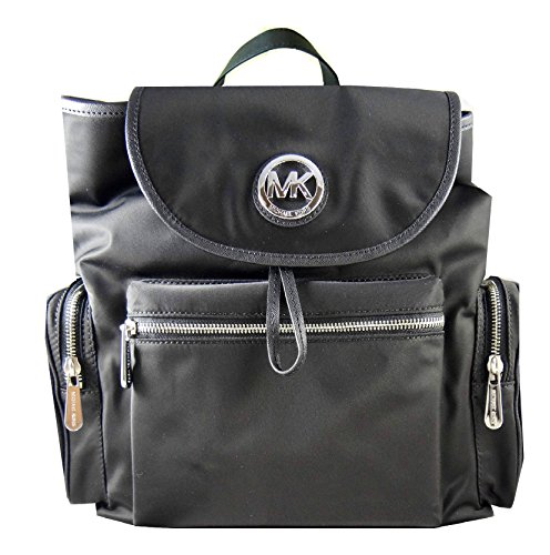-. Binding : Apparel -. Brand : MICHAEL Michael Kors -. Department : womens -. Feature : Michael Kors Nylon Flap Back Pack with Zip Pockets ~ / Crafted from durable nylon and leather with multiple pockets ~ Silvertone Hardware and Zippers ~ Snap with Flap Front Closure with MK Signature Emblem ~ Drawstring Closure under Flap ~ 3 Large Gusseted Zip Close Exterior Pockets One in Front and One on Each Side ~ Top Handle with 4" Strap Drop ~ Buckle Detailing Adjustable Back Pack Shoulder Straps 7½"-14½" drop ~ One Interior Zip Compartment and 3 Open Pockets ~ Key Fob ~ Fully Lined Michael Kors Signature Lining / Measures Approx 14" (W) X 15" (H) X 6" (D) -. ProductGroup : Shoes -. ProductTypeName : BAG -. Title : Michael Kors Fulton Nylon Flap Backpack with Zip Pockets Leather Trim Measures Approx 14" (W) X 15" (H) X 6" (D)