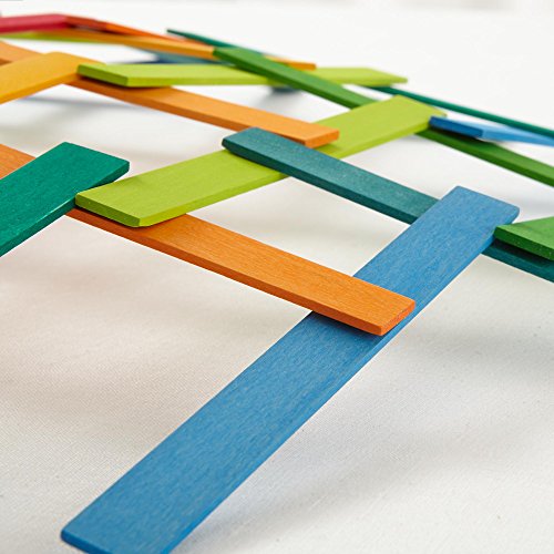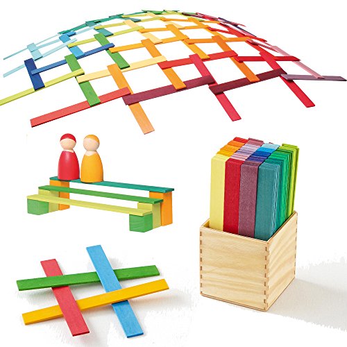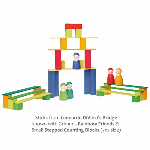 -. Binding : Toy -. Brand : Grimm's Spiel and Holz Design -. Color : multicolors -. Department : unisex-child -. EAN : 4048565403672 -. Feature : Experience Leonardo da Vinci´s engineering and invention by constructing with this beautiful set of Leonardo Sticks / A challenging building set recommended for ages 8 years & up (if used for the bridge; there are many uses for & ways to play with these colorful sticks!) / Setup instructions included to make a Leonardo Bridge of varying sizes. Included are 100 sticks in wooden storage box: 5 each of twenty different vibrant colors! / You'll be amazed at what your kids will come up with by combining Leonardo sticks other building sets (Grimm's 2x2 size blocks are ideal) / Handcrafted in Europe by the skilled artisans at Grimm's from sustainably harvested linden wood -. IsAdultProduct : 0 -. Label : Grimm's Spiel and Holz Design -. Manufacturer : Grimm's Spiel and Holz Design -. Model : GM40367 -. MPN : 40367 -. PackageQuantity : 1 -. PartNumber : 40367 -. ProductGroup : Toy -. ProductTypeName : TOYS_AND_GAMES -. Publisher : Grimm's Spiel and Holz Design -. Size : 2x2 blocks -. Studio : Grimm's Spiel and Holz Design -. Title : Leonardo Da Vinci's Bridge - Wooden Construction Sticks Building Blocks Toy in Rainbow Colors