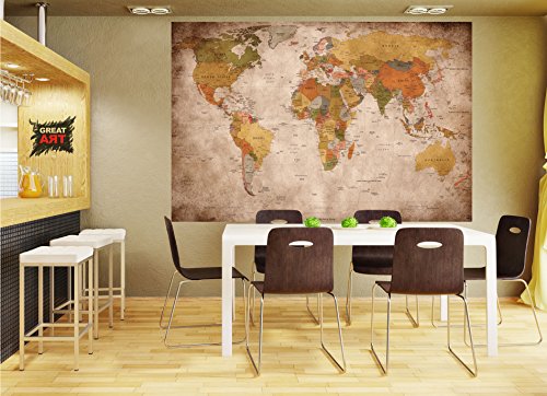 ✅ 55 Inch x 39.4 Inch / 140 x 100 cm - 1 piece ✔ XXL Poster World map wall decoration for your very personal interior design – Large format poster “Cartography”, for geography and travel enthusiasts as a wallpaper.