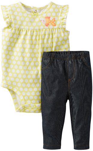 -. Feature : Includes flutter-sleeve bodysuit and pull-on pant / Features nickel-free snaps on reinforced panel to last longer through all those diaper changes / Pants: 77% Cotton, 18% Polyester, 5% Spandex / Bodysuit: 100% cotton interlock / Machine wash