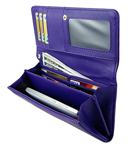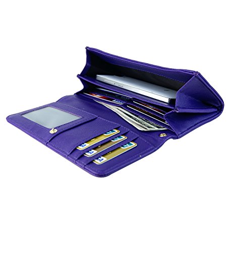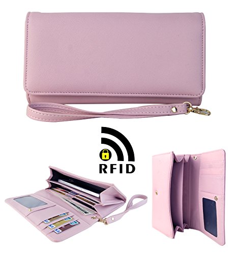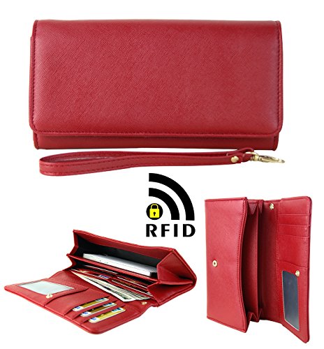 Womens RFID Blocking Wallet Classic Clutch Leather Long Wallet Card Holder Purse Handbag