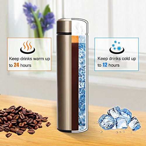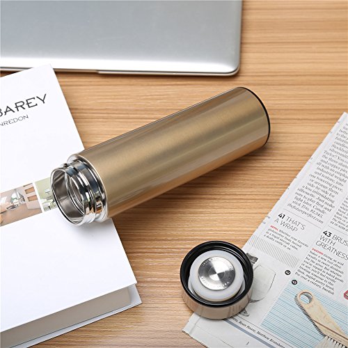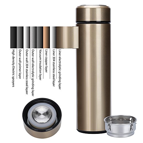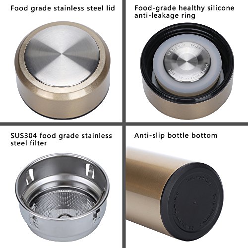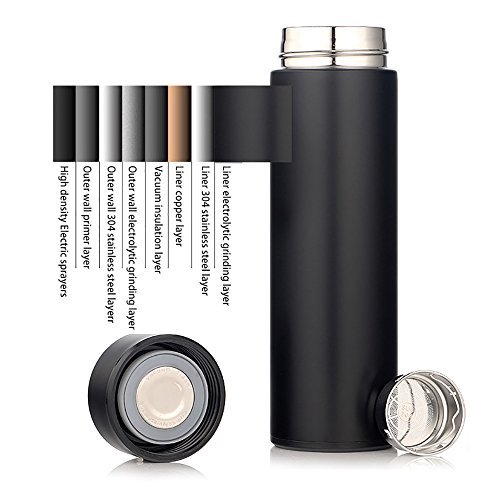 -. Title : Stainless Steel Insulated Water Bottle, Double Walled Vacuum Keeps Your Drink Hot & Cold, Office & Sport Bottle with Filter Wide Mouth Powder Coating