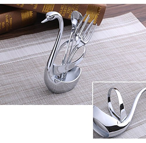 Ziv Stainless Steel Swan Base Dinnerware Fruit/Dessert Flatware Set for 14-2 Swan Base Holder with 6 Forks & 6 Spoons (swan)