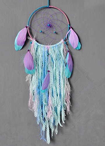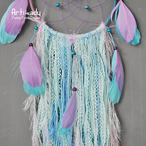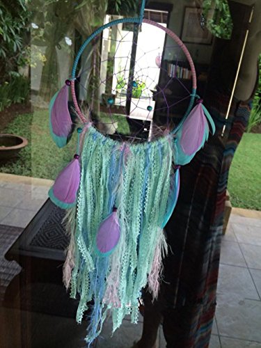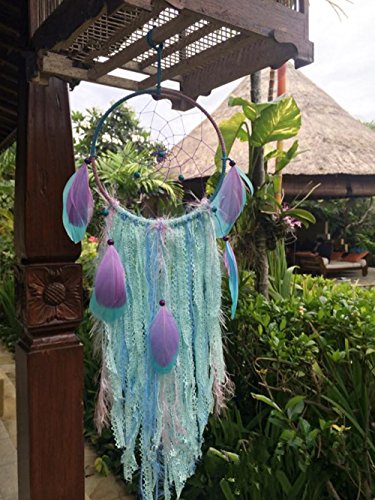 Szezon Dream Catcher Boho Handmade Traditional Shape with White Cotton Crochet and Green ribbon (DC_103Z)