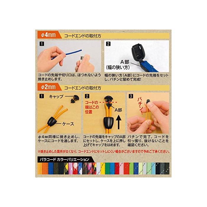 키트 내용:파라 코드φ4mm×1m 1개,코드 엔드 6개