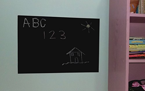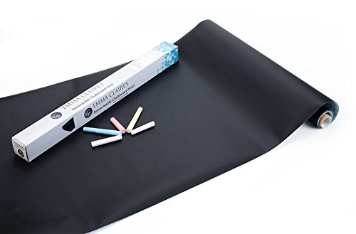 Title : Removable Chalkboard Adhesive Roll - 33% more than most. Wall sticker decal for kids to learn and play - Can be applied to a wall or any surface. Homeschool, Office or Fun. With 5 colored chalks