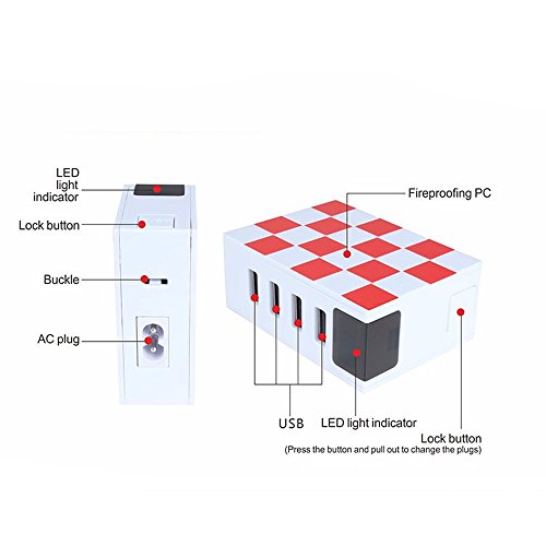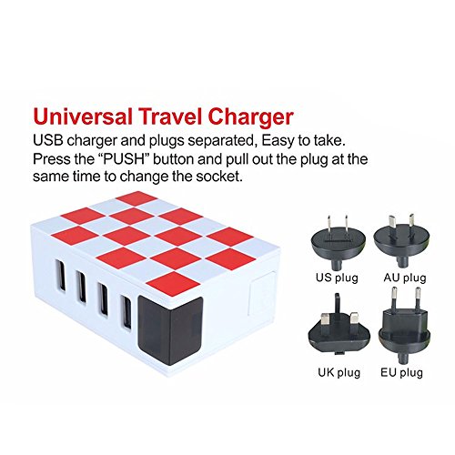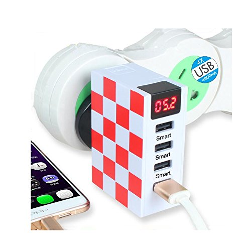 FunPay Smart Multiple USB Charger Universal Travel Adapter with Digital Tube Display for Travelers All Over The World (White+Red)