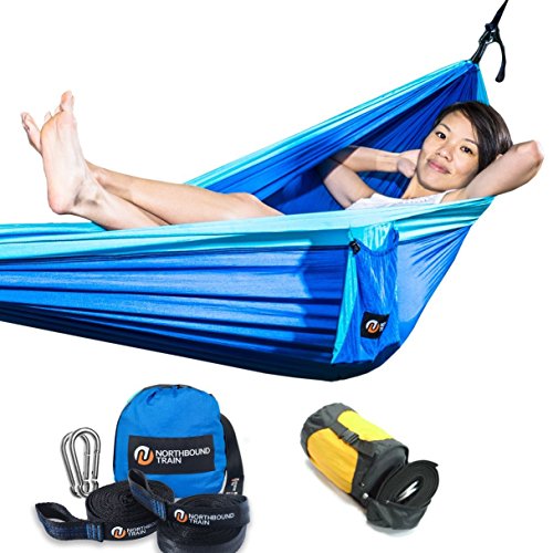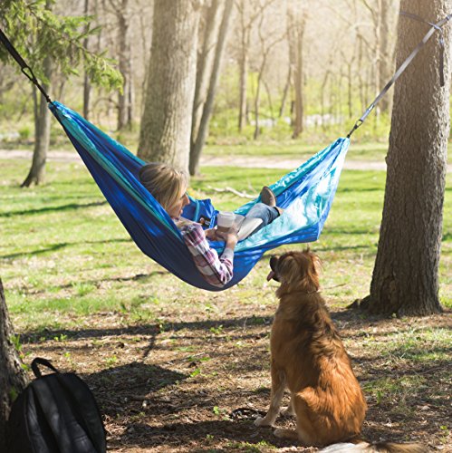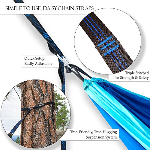 Camping Hammock - Portable Hammock - Bonus Compression sack. 25% wider than Single Hammocks. Parachute Hammock Ripstop provides safe fun and bed-like comfort for camp, beach, travel, backyard fun.