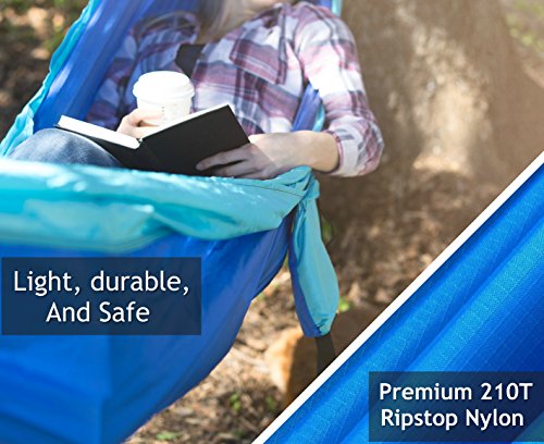 HAMMOCKS ARE NOT CREATED EQUAL! A hammock is all about fabric quality. Ours is made of lightweight 210t premium ripstop nylon that is stronger, safer, and more durable. The “Other guys” cut corners with lower grade polyester or nylon, which isn’t going to hold up to car keys, shoes, or dog paws.