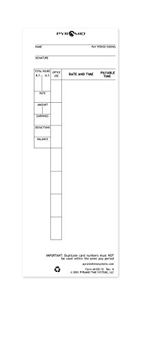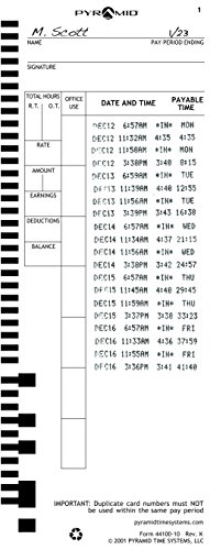 Pyramid 44100-10MB 1,000 Count Genuine Time Cards for 4000 and 5000 Time Clocks - English Time Clock