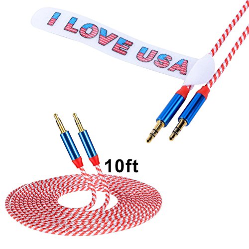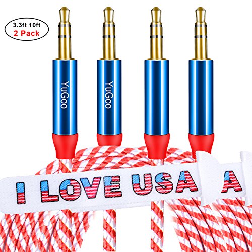 Audio Aux Cable Male to Male Braided, YuGoo 2Pack 10ft + 3.3ft 3.5mm Professional Stereo Auxiliary Cable with Gold Plated Jack Connector ( 2pack Red and White with Blue )