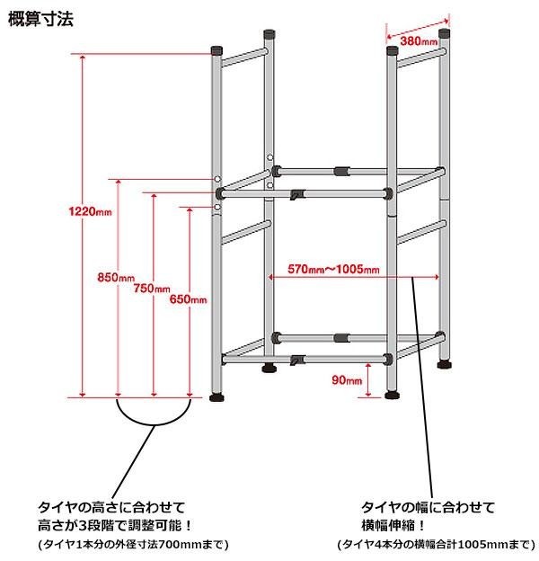 | タイヤに合わせて幅・高さが変えられるタイヤラック! |