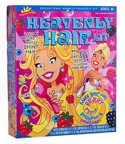Studio : Scientific Explorer Publisher : Scientific Explorer Binding : Toy Product Description The POOF-Slinky 0SA267 Scientific Explorer Heavenly Hair Kit has everything you need to become an expert stylist. You’ll make your own shampoo and conditioner, which will keep your locks shiny, silky, bouncy and healthy and be the envy of all your friends. You’ll also learn some really cool science that explains why your hair looks the way it does, how it grows, what makes it curly or straight, why it’s a certain color and more. You’ll also discover great tips from the pros on how to choose the perfect cut and style for your face and hair type to prevent future bad hair days. With each of the (7) safe and fun activities included in this educational make-it-yourself kit, you’ll get to act and think like an actual scientist. You’ll measure, compare things and ask questions. You’ll also make observations using your different senses. It’s now time to roll up our sleeves and get beautiful! Scientific Explorer’s Heavenly Hair Kit includes a shampoo base, conditioner base, thickener, pink dye, fragrance, hair wrap, mixing bowl, mixing spoon, brush and 11-page activity guide. Heavenly Hair is part of the exceptional series of home science kits based on the nationally recognized Great Explorations in Math and Science (GEMS) program pioneered at UC Berkley's Lawrence Hall of Science. Scientific Explorer is the industry leader in science kits that help develop critical thinking skills, inspire imagination and encourage exploration through interactive experiments and activities that make learning fun. The POOF-Slinky 0SA267 Scientific Explorer Heavenly Hair Kit is recommended for children 8-years of age and older. POOF-Slinky is the manufacturer of the world famous Slinky and the top selling POOF foam sport balls in North America. Ideal and Scientific Explorer are other well-known brands, rounding out the POOF-Slinky family. With roots in the toy industry for over 100-years, POOF-Slinky brands continue to grow and broaden. Visit www.amazon.com/alex-brands for more information on Alex Brands and our best-selling line of educational and entertaining products for kids. 1