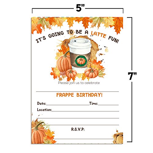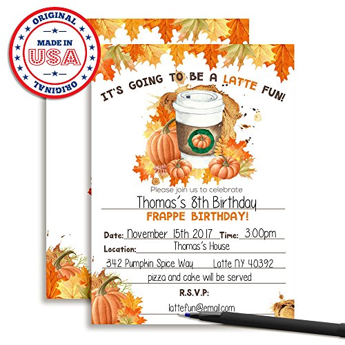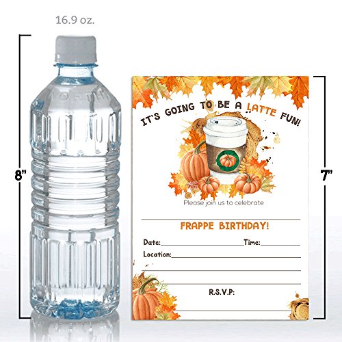 - Awesome Quality: Forget smaller, chintzier cards printed on flimsy paper. At 5"x7" your Pumpkin Spice Latte Invites are bigger & sturdier than most. Plus, they're printed on 80# stock for ultra durability.