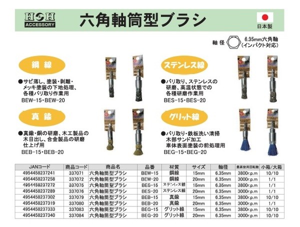 【商品名】(業務用2個セット) H&H 六角軸筒型ブラシ/先端工具 【塗装前処理用/20mm】 グリット線 日本製 BEG-20 〔DIY用品/大工道具〕