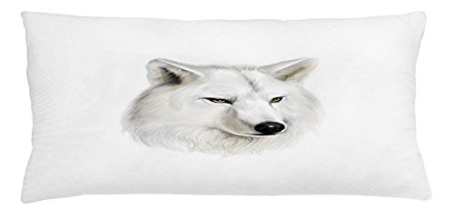 Wolf Throw Pillow Cushion Cover by Ambesonne, White Canine Head with Great Detail Hunter Mammal...