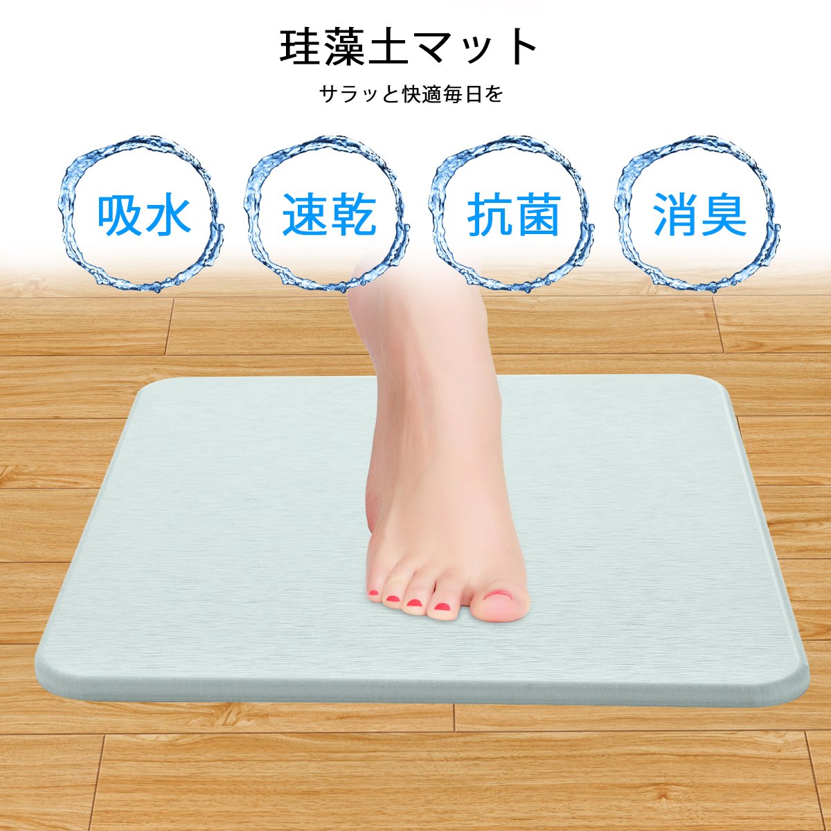 Just after stepping on a mat with a wet foot of the bath rising, it begins to suck water.