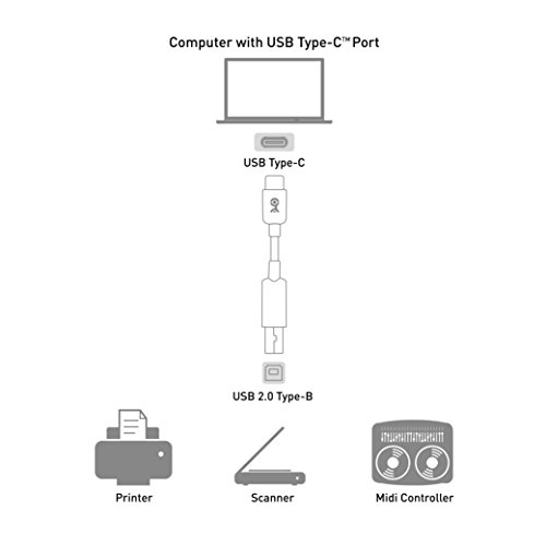 USB TYPE C TO B CABLE connects a computer with a Type-C USB port to a printer, scanner, printer switch, external hard drive or legacy peripheral device with a USB 2.0 Type B port; Reversible USB Type C?connector plugs and unplugs easily without checking for the cable orientation