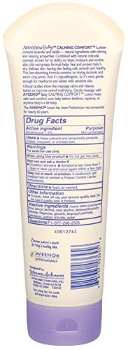 Aveeno baby calming comfort lotion-8 oz protect and heal your baby's delicate skin with the ingredients in aveeno baby calming comfort lotion. This lotion helps retain moisture while soothing .why you'll love it: this lotion can be used to moisturize your baby's skin for a full 24 hours. Features: contains ingredients such as lavender and vanilla gentle for infants with sensitive skinnon-greasy and fast-absorbing formula contains colloidal oatmeal.Feature