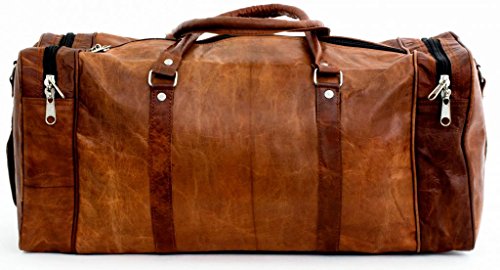 -. Feature : New genuine leather Duffel bag / Travel Bag handcrafted with vintage style / 1 front pocket, Top Zipper compartment and 2 Side pocket / Dimensions: 24 inches (length), 11 inches (height), 11 inches (depth) / Strong & durable brass fittings & buckles, quality zippers, heavy duty lining / Adjustable shoulder Strap, Big main compartments for clothing /travel and sports gear etc, Two Side pockets for accessories etc. Front pocket for cash /mobile