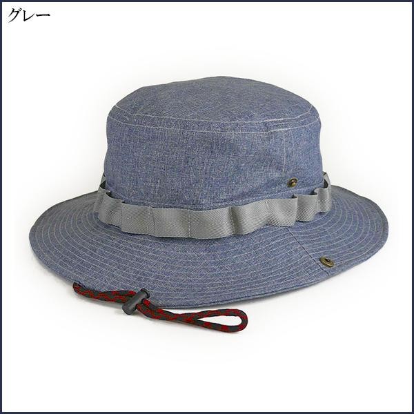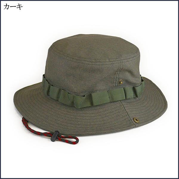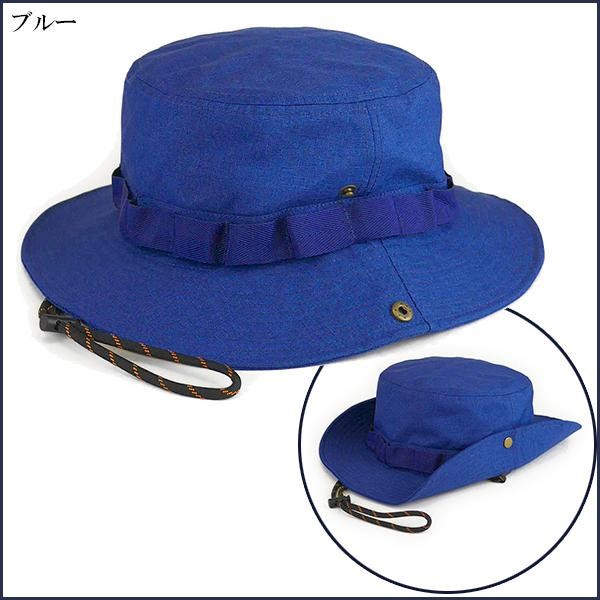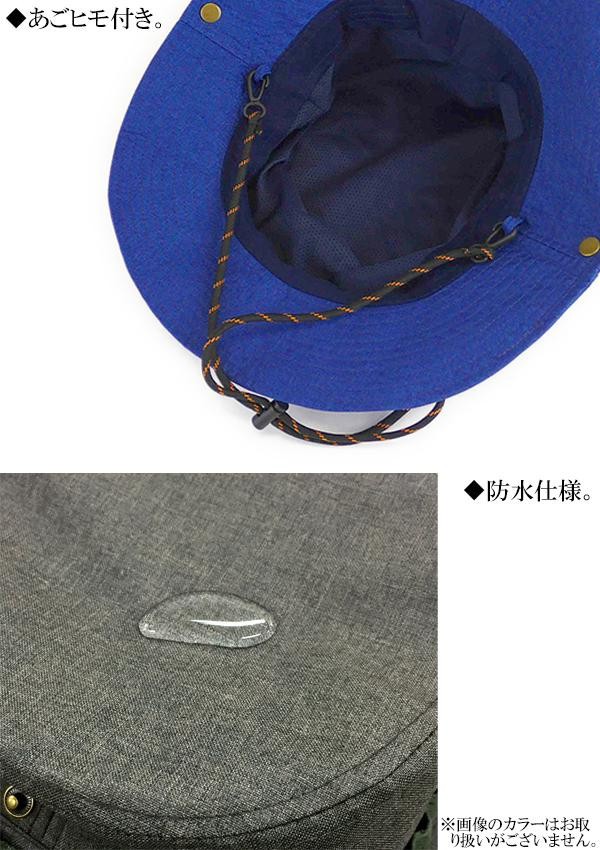 | サイドのボタンを留めることも出来るので、2通りの被り方が楽しめます。あごヒモも付いているのでアウトドアでも大活躍!!表面にコーティングを施した防水仕様ですので、雨が降っても大丈夫♪ |