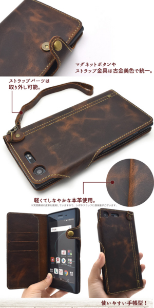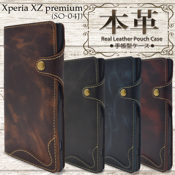 軽くてしなやかな本革使用した、Xperia XZ Premium SO-04J手帳型ケース。