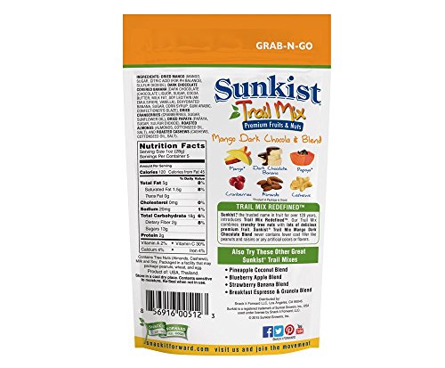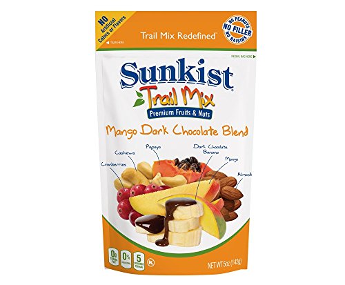 SUNKIST Fruit Lover's Trail Mix- Mango Dark Chocolate 5 oz. (8 Pack)