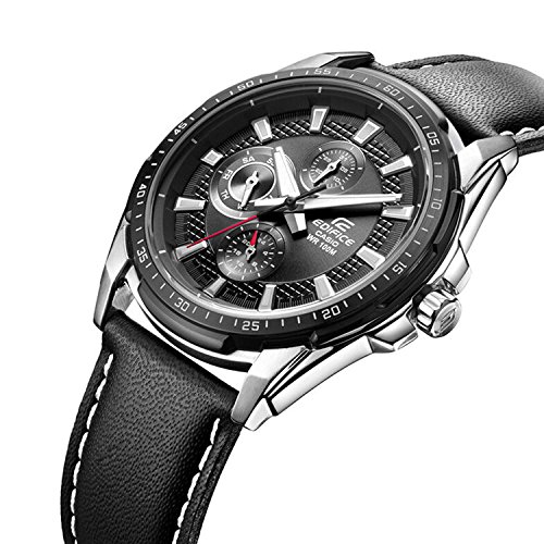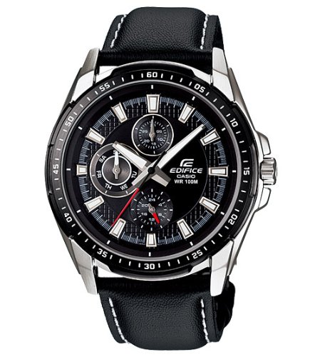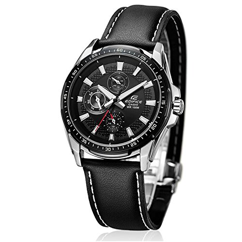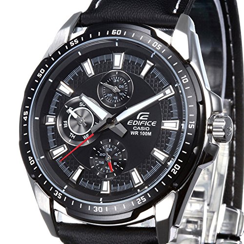 -. Title : Casio Men's Edifice EF336L-1A1V Black Leather Quartz Watch with Black Dial