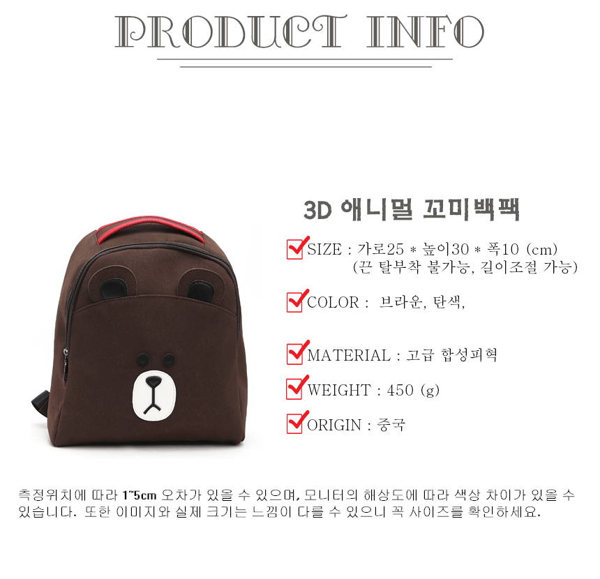 Travel Animal Kitty Backpack Female Cute Child Bear Character Cartoon 3D Girl Bag
