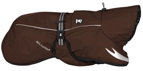 雨風から愛犬を守るようにデザインされたレインコートです。コート表面には防水・通気性のある「ハウンドテックス(C)」素材を使用。裏地は軽量で通気性の良いメッシュ素材、襟部分の先端は折り返し加工で耐久性の高い作りになっています。さらに、暗いところで反射して光る「3Mリフレクター」を使用。装着は背中のバックル留めで着脱簡単、便利なハーネスポケット付きです。 |