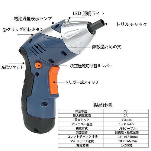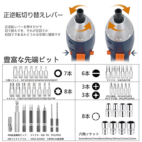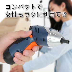一家に1セット常備すれば、日曜大工や家具の組み立て時に役に立つ「コンパクト電動ドライバーセット」です。 電動ドライバーを使ったことのない方も、安心・簡単にご使用いただけます。