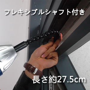 フレキシブルシャフトを使えば、角度を360度まで自由自在に曲げることができ、狭いところや小さな空間でも気軽に使用できます。壁際や天井付近など届かなかった場所にも届くので作業が楽になります。