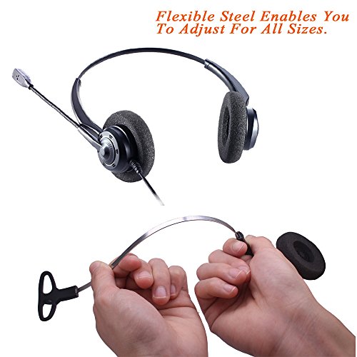 MOST COMFORT BINAURAL HEADSET: Ultra lightweight office RJ headset with adjustable headband to fit all head sizes, a flexible mic boom to suit your preference.