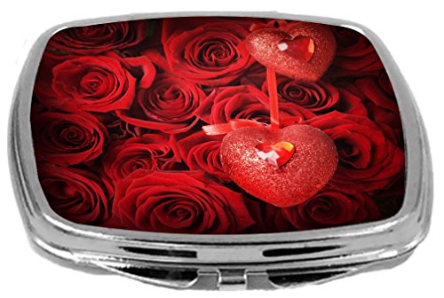 Rikki Knight Compact Mirror, Valentine Roses with Heart