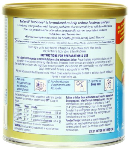 ENFAMIL PROSOBEE SOY INFANT FORMULA, IRON FORTIFIED, POWDER, 12.9-OUNCE (PACK OF 6)
