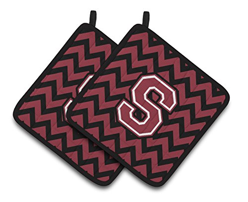 Caroline's Treasures CJ1052-SPTHD Letter S Chevron Pot Holders (1 Pair), 7.5" x 7.5", Garnet/Black