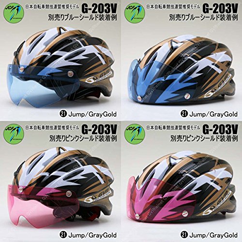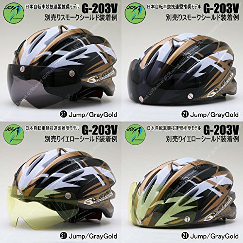 원본상품명: GVR G-203V サイクルヘルメット JCF推? 21 ジャンプ/ゴ?ルド 54-60cm クリアシ?ルド付 G-203V