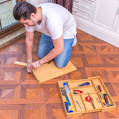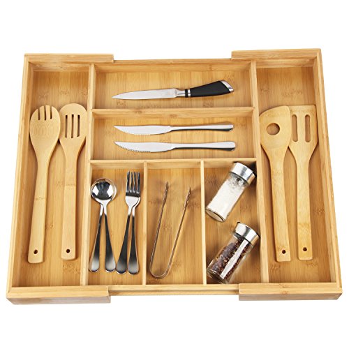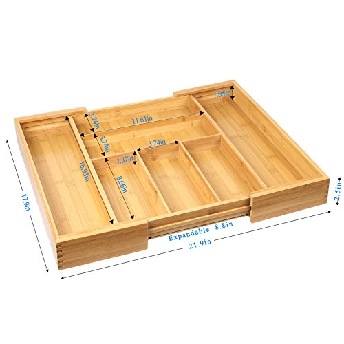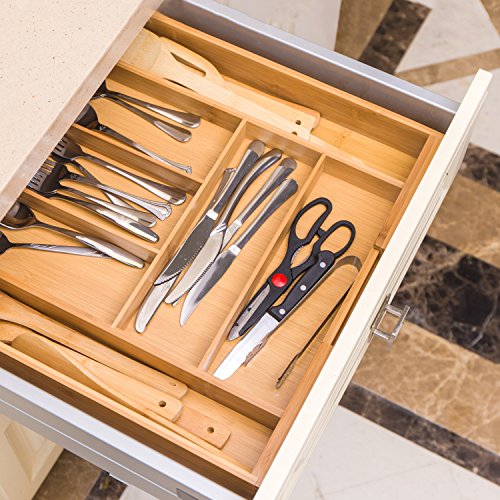 Expandable Cutlery Tray & Drawer Organizer for Silverware,Utensils,Flatware, Kitchen Drawer Storage with Bamboo- by Ecobambu