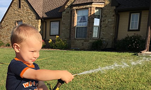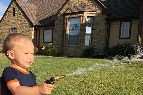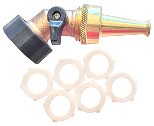 -. Feature : Best water jet sweeper nozzle flow, guaranteed to fit snug & connect to your hose without leaks, every time! And the nifty bend in this gooseneck angle water shut-off valve works great combined with your nozzle to help provide an easier to hold grip. It also works great because it can be used to adjust the water pressure at the end of the hose, saving you from having to run back and forth between the spigot every time you want more or less pressure, or when you want to turn off the water flow / Heavy Duty! You can abuse this nozzle on concrete and more. It may get scuffed up, but still works great. The water shut-off ball valve is easy to turn and can be moved to a complete "on" position, or to a complete "off" position, allowing no leaks or drips to come through, or anywhere in-between, as a water regulator, to give you just the perfect amount of water flow and pressure you want. A simple quarter-turn rotation of the handle is all it takes to go from full "on" to leak-free "off" / The shut-off valve's brass swivel connector is coated in a solid but slightly soft feeling rubbery plastic material, to make it easy to grip with your bare hands. And the solid brass underneath ensures long-lasting performance along with the ease-of-use / Get the full power & thrust of your faucet's high water pressure: the sweeper sprayer has no water-saver device attached. These fit all regular garden hose sized faucets, spigots, connectors, hoses, and attachments. If you can connect any normal garden hose to it, this will fit! This combo set includes 1 Solid Brass 2" Water Jet Sweeper Hose Nozzle; 1 Angle Water Shut-off Valve; Extra hose washers; and access to a downloadable secret gardening method e-book / Set comes with a full 100% lifetime satisfaction and happiness guarantee. Guaranteed to operate leak-free or we'll send you a free replacement or full refund. We are confident in the ability of this nozzle and shut-off valve to last and work reliably for you. This is because the shut-off valve is made primarily from solid, heavy-duty brass. It can withstand more abuse than other cheap shut-off valves. The inside rotating ball valve is made from chromed brass, not cheap plastic